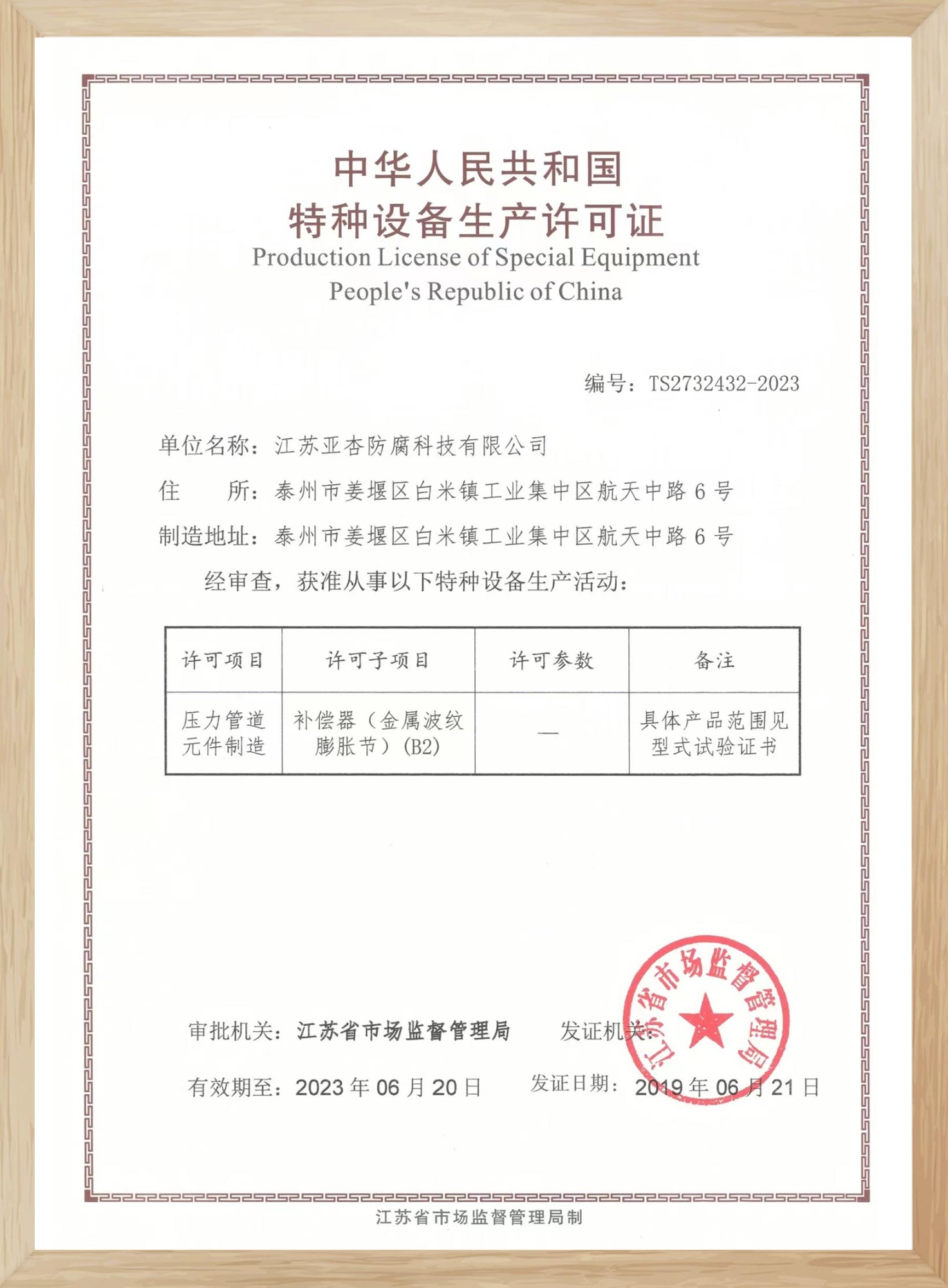 特種設備生產(chǎn)許可證